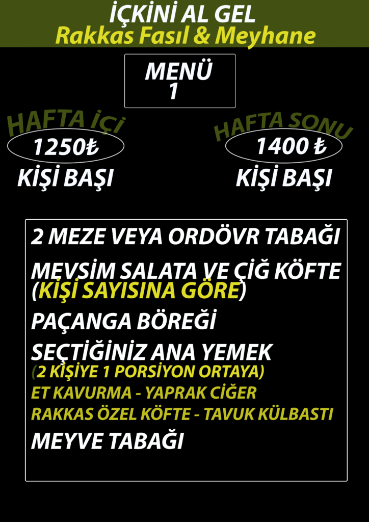 Ankara’nın en renkli ve enerjik mekanlarından biri olan Rakkas, fasıl müziği eşliğinde geleneksel Türk meyhane kültürünü yaşatırken, bir yandan da misafirlerine lezzet dolu bir deneyim sunuyor. Mekanın sunduğu iki özel menü, hem hafta içi hem de hafta sonu keyifli vakit geçirmek isteyenler için birbirinden lezzetli seçenekler içeriyor. Bu yazıda, İçkini Al Gel Menü 1 ve Menü 2’sini detaylı bir şekilde inceleyerek, bu mekanda neler bekleyebileceğinizi anlatacağız.